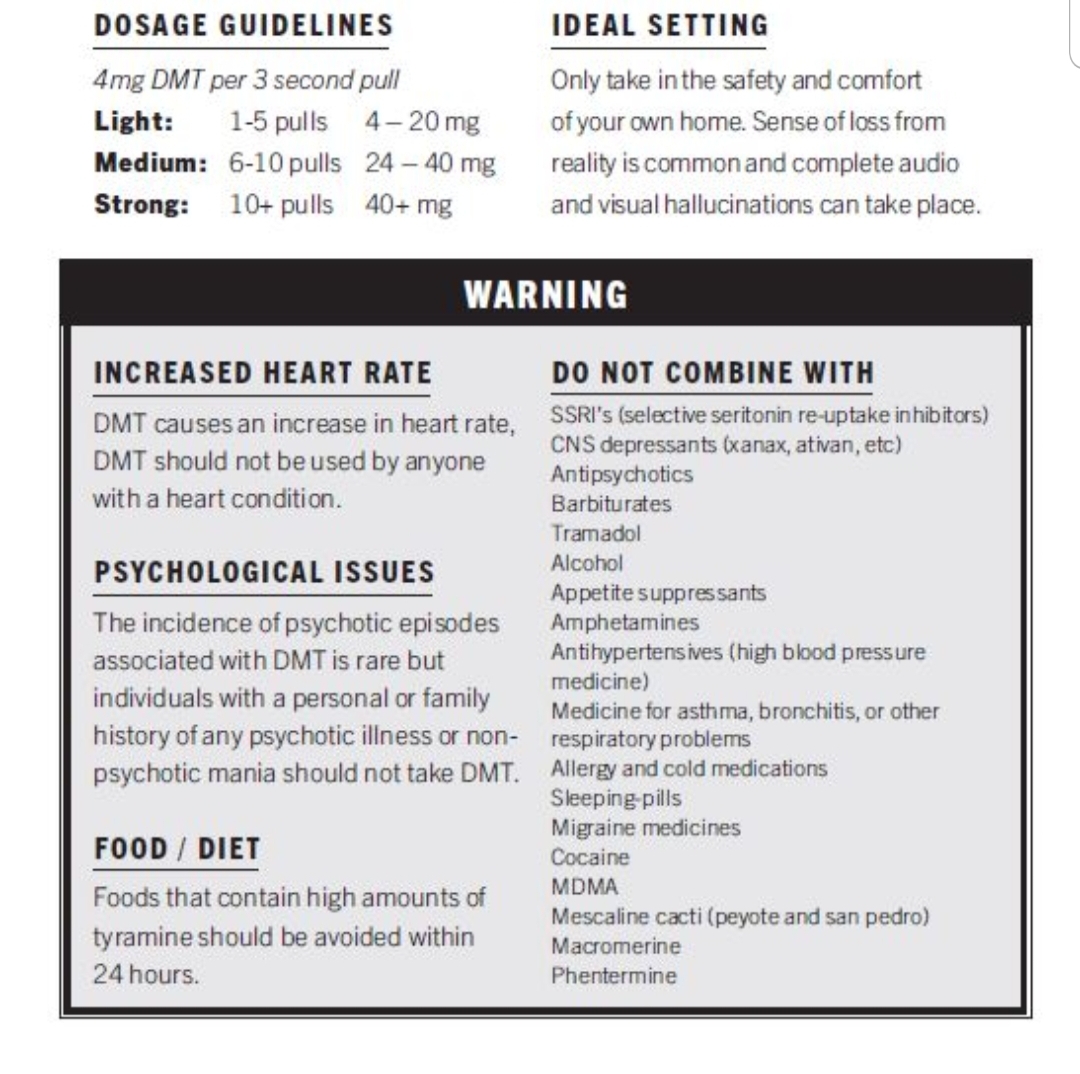DOSAGE GUIDELINES: 4mg DMT per 3 second pull